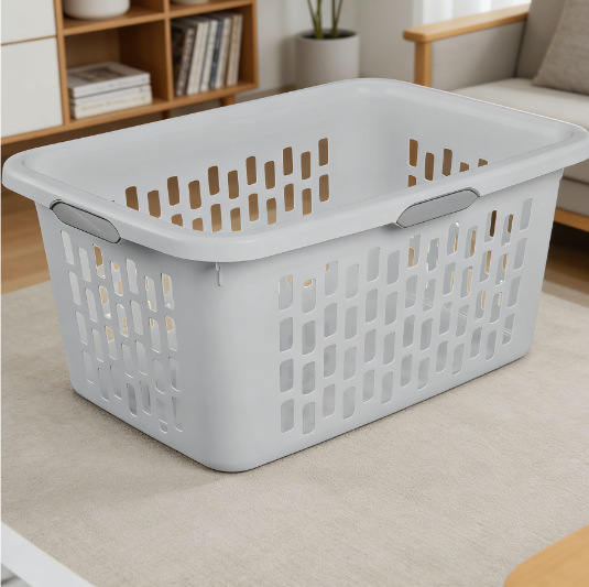 Four-handle design: The basket features four integrated handles along its rim, allowing for easy handling from different directions and convenient movement of a full load of clothes.