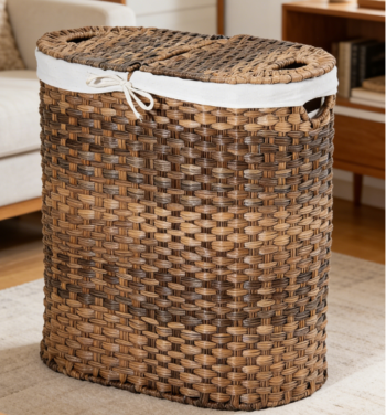 Oval wicker laundry basket, large size, suitable for bedroom clothing organization